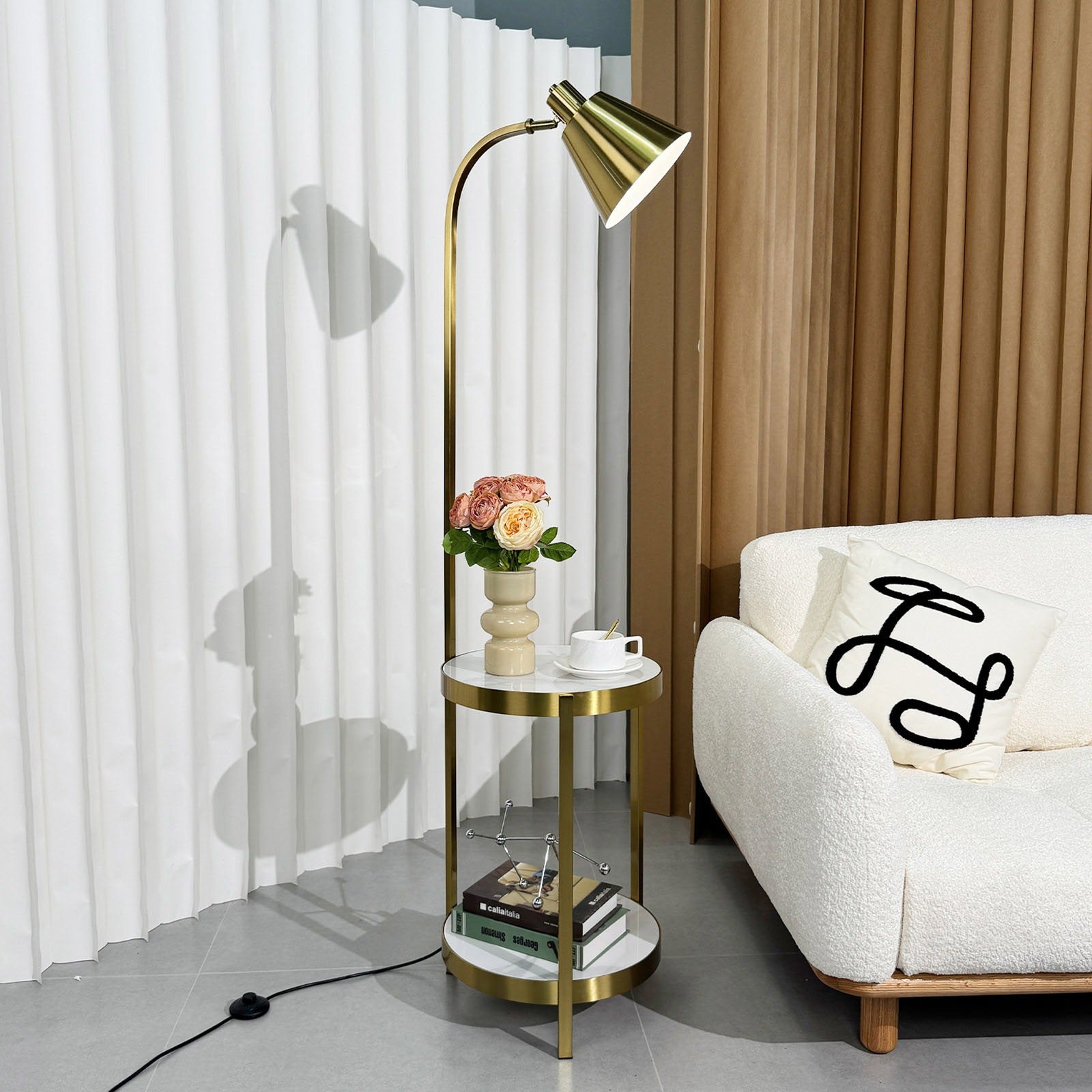 HDC Metal Marble Gold Living Room Dining Room Floor Lamp With Shelf