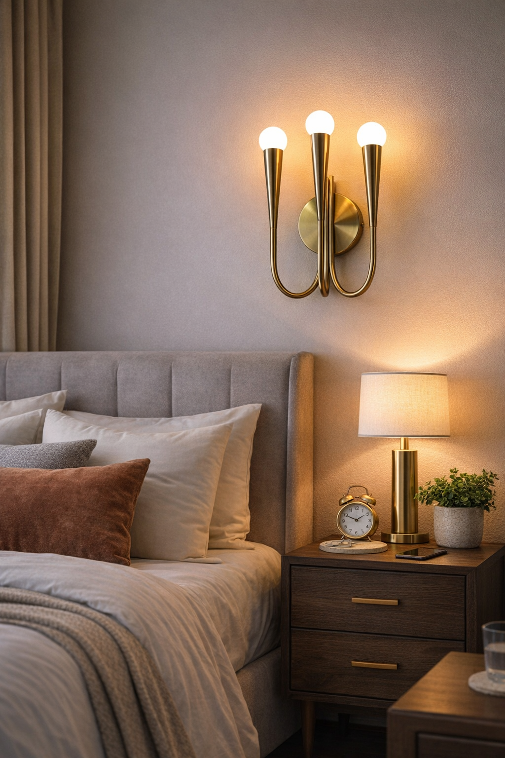 HDC Modern 3-Light Brass Finish Wall Sconce for Living Room, Bedroom & Hallway