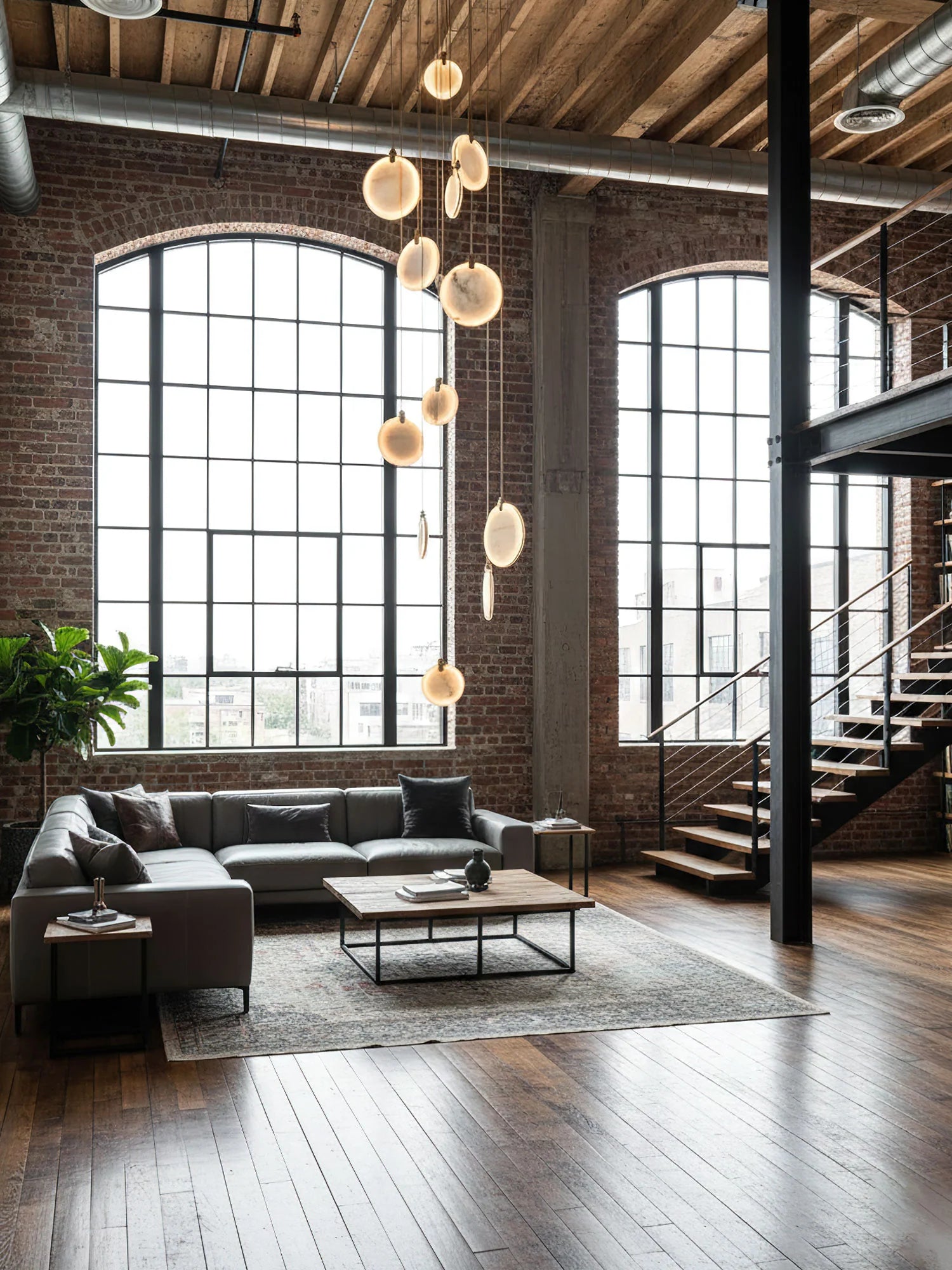 - Elegant multi-drop hanging design for double-height spaces