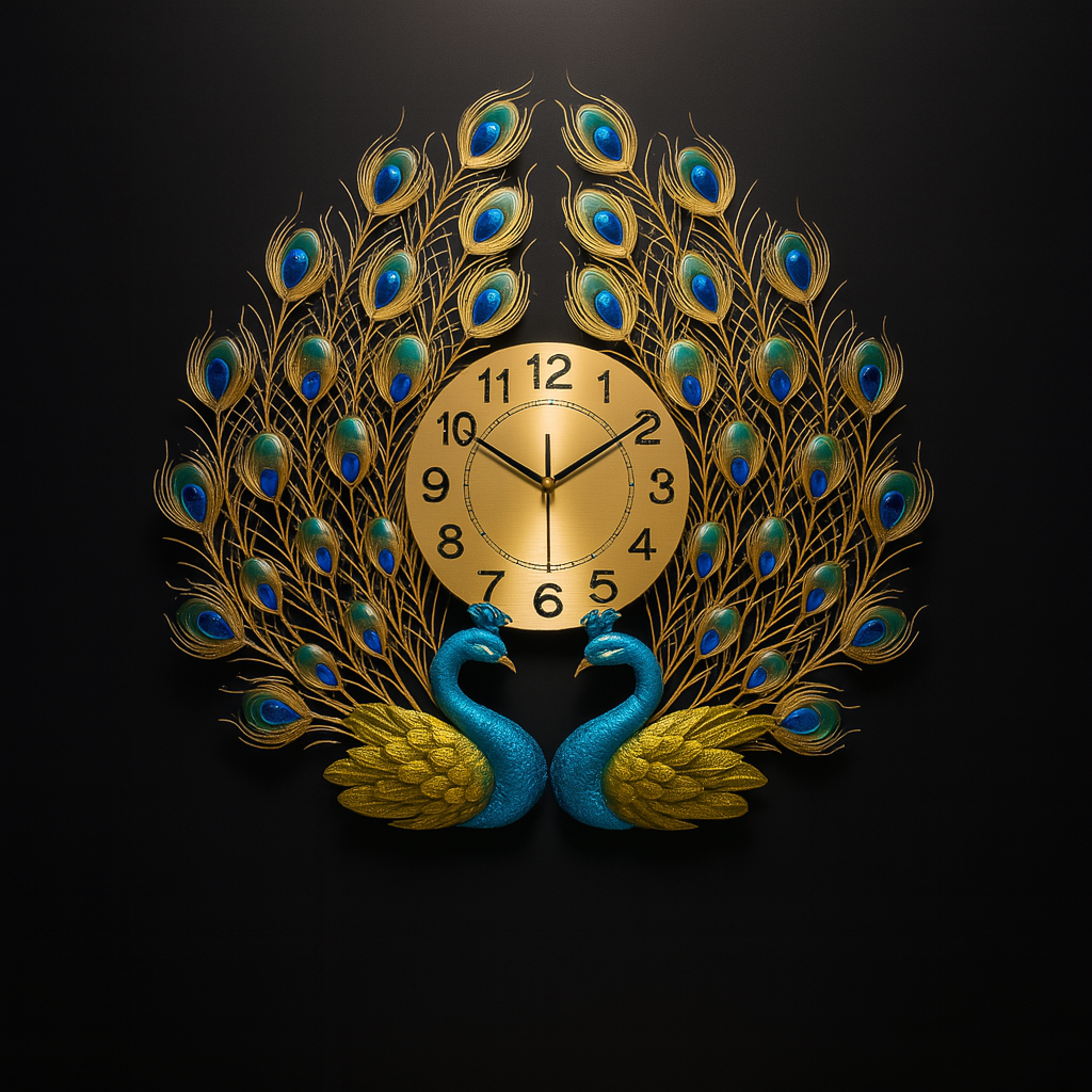 - Enhance the style and functionality of your living room or bedroom with the Peacock Metal Wall Clock. This stunning clock is not only a practical timepiece but also a beautiful decorative addition to your wall.