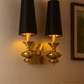 HDC Regal Twin Noir Wall Sconce with Brushed Gold Detailing and Black Shades